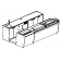 Retro Banco composto da 1 lavello diametro 42 cm, zona da 100 cm 2 sportelli neutri a sx, zona a giorno da 100 cm (per lavabicchieri o produttore di ghiaccio), zona da 150 cm a 3 sportelli neutro a dx.