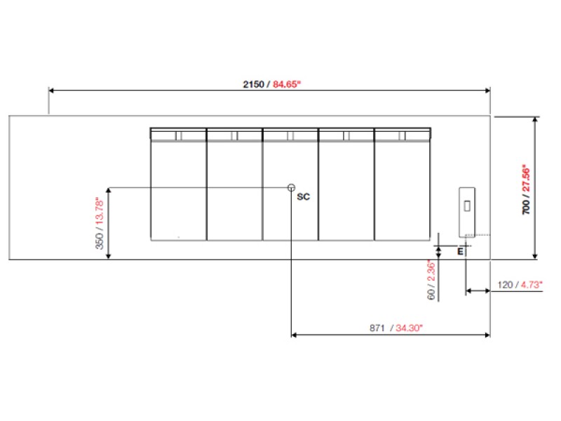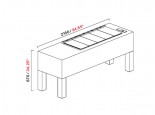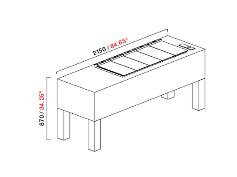 Struttura portante realizzata con tubolari e scatolati in lamiera zincata, rivestimento esterno in stratificato colore cemento. All’interno del tavolo BELLEVUE è alloggiata la vasca pozzetti PANORAMA da 12 fori senza riserva, realizzata con struttura schiumata con poliuretano a densità 40 Kg/mc (spessore 60 mm) completa di serpentina in tubo di rame affogata e valvola di espansione. Interno vasca in acciaio inox AISI 304 finitura 2B con piletta di scarico dotata di tappo di chiusura. Cestelli in filo plastificato per contenere le carapine, con integrato il sistema anti-rotazione, e vassoio superiore in policarbonato stampato a iniezione: vassoio e cestelli sono estraibili per consentire la pulizia della vasca. Il motore è alloggiato nell’apposito vano accanto alla vasca pozzetti PANORAMA ed è accessibile da sotto il tavolo grazie a un volano con fine corsa che consente la discesa del motore per le operazioni di pulizia e manutenzione. BELLEVUE è disponibile nella lunghezza L 2400 mm con 12 fori senza riserva, con 1 o 2 temperature differenziate (8+4 fori). Disponibile anche la versione con 4 ruote pivotanti di cui due dotate di freno. La presa elettrica per il collegamento è alloggiata in una gamba del tavolo.