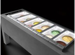 Banco a pozzetto gelato mod. Bellevue 12 fori monotemperatura da 240 cm(estetica 1), Il tavolo BELLEVUE è un espositore e conservatore di gelato/granite “da spina” disponibile nella lunghezza 2400 mm con vasca pozzetti PANORAMA da 12 fori senza riserva, motore a bordo monofase.