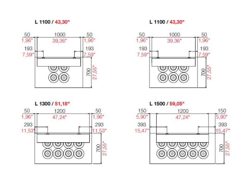 rimovibile per accedere al vano motore. 4 ruote pivotanti per la movimentazione del banco.