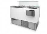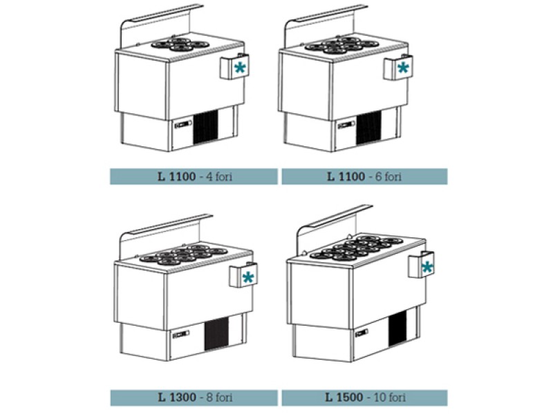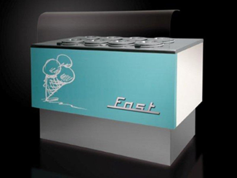 Vasca pozzetti con agitatore interno di aria per uniformare la temperatura e permettere la perfetta conservazione del gelato, con unità condensatrice