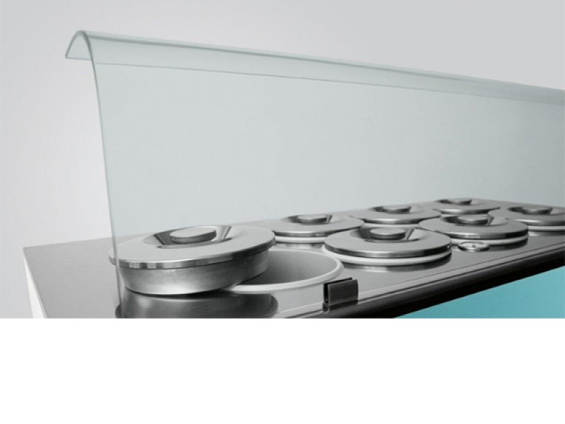 pozzetti granite/gelato inserita nei banchi FAST è disponibile con foro rotondo, completa di coperchi tondi. Le carapine con bugne, per il sistema antirotazione,