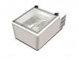 Vetrina per gelato da banco modello POP 50. Presenta una struttura in lamiera d'acciaio preverniciata bianca con trattamento anti-corrosione.