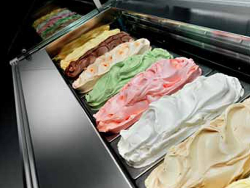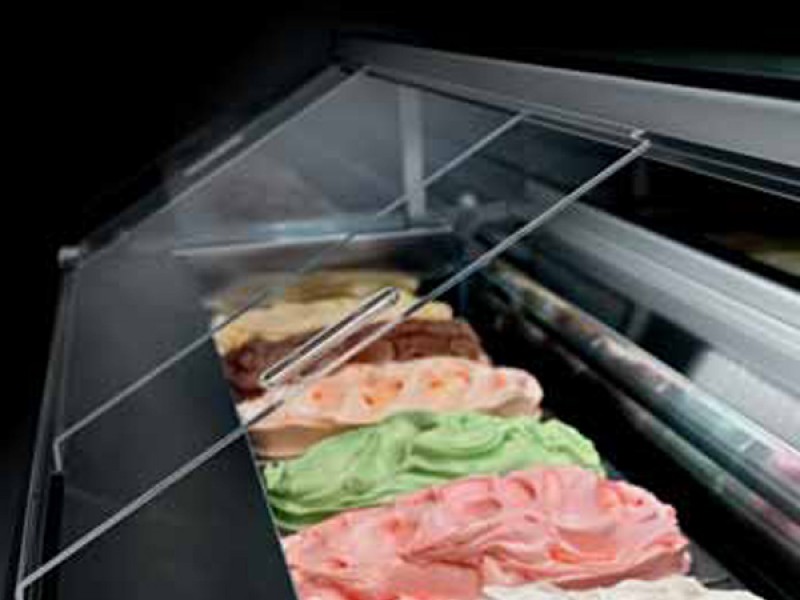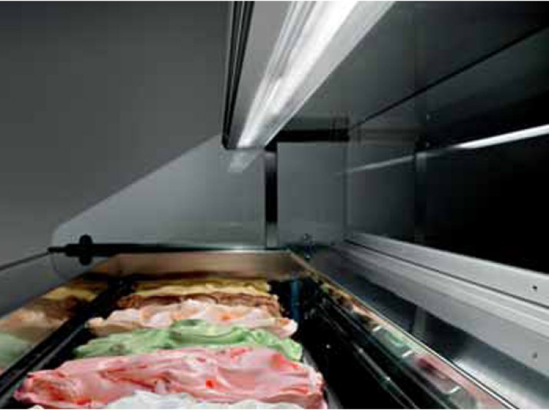 Vetrina gelato ventilata mod. Snack&food 150 da 8 vaschette 36x16,5 in fila singola (con riserva in vasca).