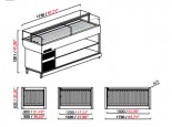 Banco vendita vetrina drop in delice chiuso, freddo ventilato/ caldo secco modello L1320 senza pannellatura, struttura portante inferiore in tubolare d'acciaio verniciata con polveri epossidiche a forno 180°C con elementi di irrigidimento, piedini regolabili. Scocca monoblocco schiumata con poliuretano a bassa densità con spessore minimo di 50 mm. Parti a vista in acciaio inox AISI 304 finitura Scotch Brite. Sistema anti condensa con cavo caldo inserito all'interno di un tubo in rame posto a contatto della cornice perimetrale della vasca. Il piano espositivo dei banchi DROP-IN DELICE con servizio freddo/caldo è costituito da un unico piano in vetro bianco temperato con serigrafia resistiva incassato di 30 mm rispetto al bordo perimetrale e ulteriormente ribassabili di altre 2 postazioni di 20 mm ciascuna, per consentire di esporre e conservare adeguatamente merce di altezza diversa. La regolazione del piano espositivo in vetro è facilitato dalle maniglie laterlai.
