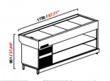 Banco vendita vetrina drop in delice senza vetri, pralineria modello L920 senza pannellatura, struttura portante inferiore in tubolare d'acciaio verniciata con polveri epossidiche a forno 180°C con elementi di irrigidimento, piedini regolabili.