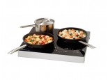 Piastra a induzione a 3 zone Mod. 105940. Brevissimi tempi di riscaldamento, elevata prontezza e precisione di regolazione e da basse dispersioni termiche- Cottura veloce rispetto agli altri metodi. Funziona creando un campo elettromagnetico indotto nel recipiente che, scaldandosi, cuoce gli alimenti al suo interno. Riduce il rischio di ustioni essendo a temperature basse a confronto delle altre piastre e per questo motivo, rende più facile la pulizia in quanto i residui di cibo non bruciano e quindi non si incrostano.
