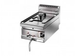 Friggitrice a gas da banco mod. SF10M, con vasca da 10 lt, struttura, coperchi, cestelli in acciaio inox, piano di lavoro e vasche stampate in acciaio inox spessore 15/10. Manici cestelli e pomelli coperchi in materiale isolante, termostato a 7 posizioni da 110/190°C.