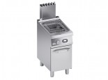 Vasca dotata di una valvola gas in sicurezza comandata da scheda elettronica con termocoppia in classe J, che permette la regolazione della temperatura fino a 190° C. Sicurezza garantita da una termocoppia tenuta attiva dalla fiamma del bruciatore pilota. Il ciclo del melting assicura il controllo elettronico del riscaldamento dell'olio ad intermittenza programmata sia durante la fase di riscaldamento dell'olio sia durante quella di mantenimento della temperatura. Vasca e invaso in acciaio inossidabile con bordi arrotondati inclinati verso il foro di scarico collegato a una bacinella in acciaio inossidabile per raccogliere l'olio. Bacinella e filtro in acciaio inossidabile forniti in dotazione di serie.