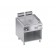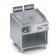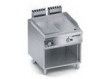 Piano di cottura in acciaio dolce di grosso spessore con bordi arrotondati e paraspruzzi saldato a tenuta per assicurare facilità di pulizia. Piastra inclinato e rivolta verso il foro per lo scarico dei grassi, che è collegato a un contenitore posto al di sotto della superficie di cottura.