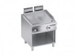 Fry top vano a giorno con piastra mezza liscia e mezza rigata con vano a giorno modello K4GFRS10VV, struttura in acciaio inossidabile. Manopole in materiale plastico termoindurente. Rapida salita della temperatura e mantenimento del calore ottenuti grazie a due bruciatori a fiamma stabilizzata ad elevato rendimento, adatti a lavorare ad alte temperature.