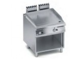 Piano di cottura in acciaio dolce di grosso spessore con bordi arrotondati e paraspruzzi saldato a tenuta per assicurare facilità di pulizia. Piastra inclinato e rivolta verso il foro per lo scarico dei grassi, che è collegato a un contenitore posto al di sotto della superficie di cottura.
