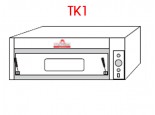 Forno elettrico mod. TKC1 (versione inox o rustica a vostra scelta) per pizzeria e pasticceria a 1 camera. Camera di cottura in lamiera acciaio alluminata. Piano in refrattario. Sportello ad apertura controbilanciata. Scarico vapori. Illuminazione interna protetta. Resistenze corazzate in acciaio inox. Camere indipendenti con regolazione termostatica della temperatura separata cielo/piano.