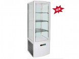 Vetrina espositiva 4 lati mod. LSC235 refrigerazione ventilata, versione da banco, colore bianco esecuzione in materiale plastico, vetrina refrigerata per esposizione e conservazione di prodotti ferschi come pasticceria, bibite, lattine, vino, generi alimentari.