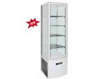 Vetrina espositiva 4 lati mod. G-LSC280 refrigerazione ventilata, versione da banco, colore bianco esecuzione in materiale plastico, vetrina refrigerata per esposizione e conservazione di prodotti ferschi come pasticceria, bibite, lattine, vino, generi alimentari.