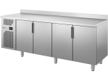 Tavolo gastronorm refrigerato 4 porte Mod. HTRE7.742. Rivestimento interno ed esterno in acciaio inox . In dotazione 4 griglie plastificate (1 per porta ). Refrigerazione ventilata 0°C; +8°C con gruppo monoblocco. Con piano ed alzatina .