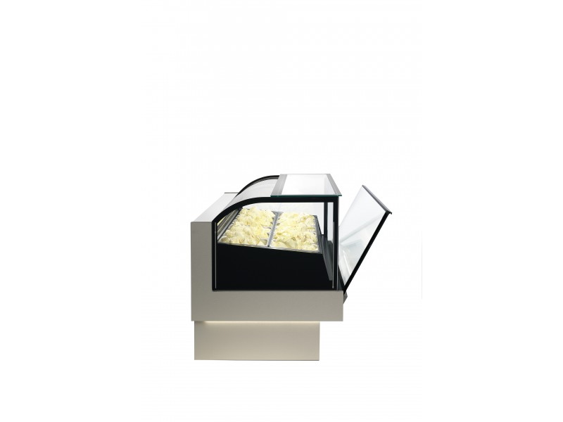 Il sistema di chiusura HCS consente di conservare il gelato dentro la vetrina senza necessità di riporlo in armadi o celle refrigerate a bassa temperatura: