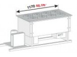 Ogni foro è dotato di collare in acciaio inox finitura lucida e di coperchio coibentato in acciaio inox finitura lucida. Il piano rivestito in acciaio inox finitura Scotch-brite ha installato al suo interno un sistema anticondensa con cavi caldi. Il bordo alto 10 mm consente l’installazione “a incasso” sopra il piano lavoro, oppure a filo del piano lavoro.