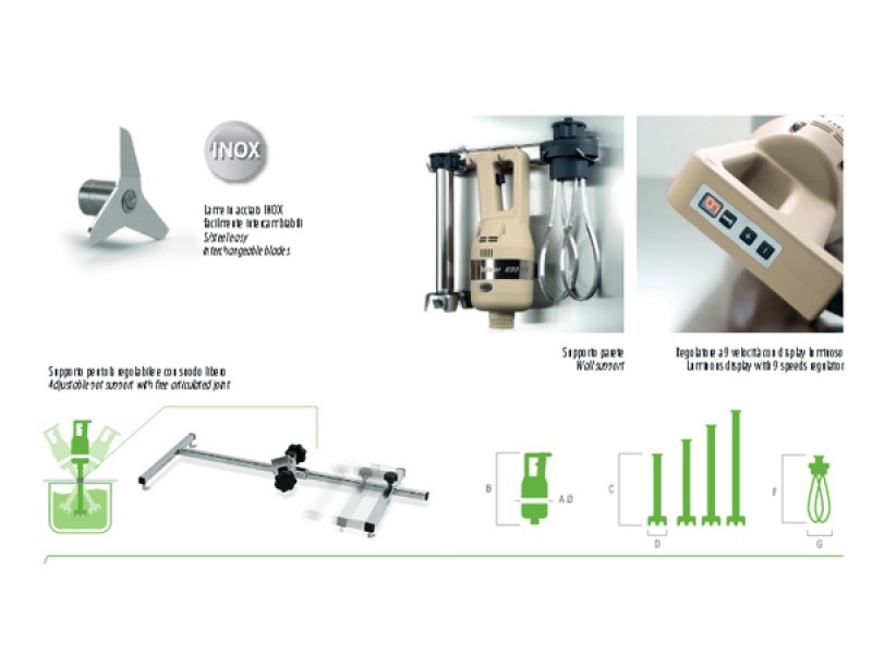 MIXER Heavy (per grandi lavorazioni) 350 VV mod. FM350VVC400 combi con Frusta e Mescolatore da 400 mm. 230V-50/60 Hz Velocità Variabile.