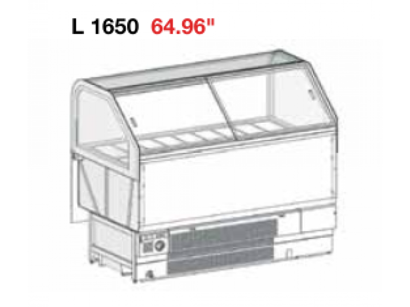 Il prezzo si riferisce alla vetrina con fianchi in vetro camera e pannello frontale in nobilitato bianco. Sono esclusi dal prezzo i fianchi estetici inferiori, le vaschette gelato e le etichette segnagusto (