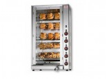 Girarrosto elettrico con movimento ad aste singole sovrapposte mod. E-15P-S5 (15 polli - n° 5 aste, luce 55 cm) realizzate in acciaio Inox con porte a vetro e comandi elettromeccanici (bacinella con rubinetto scarico grassi compreso).