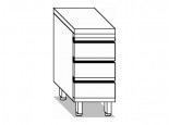 Cassettiera in acciaio inox AISI 441 con top in acciaio inox AISI 304 mod. 89.3 di misure L50xP70xH85 cm,. dotata di 4 piedini regolabili in altezza.
