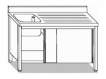 Lavello in acciaio inox AISI 441 con top lavatoio in acciaio inox AISI 304 mod. 41056.13 di misure L130xP60xH85 cm, armadiato con ante scorrevoli, ripiano di fondo, alzatina a muro, e 1 vasca da 50x40xH25 cm e gocciolatoio a destra. Dotato di tappo troppo pieno. Non è compreso nel prezzo il sifone e il miscelatore.
