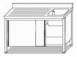 Lavello in acciaio inox AISI 441 con top lavatoio in acciaio inox AISI 304 mod. 41010.10 di misure L100xP70xH85 cm, armadiato con ante scorrevoli, ripiano di fondo, alzatina a muro, e 1 vasca da 60x50xH30 cm e gocciolatoio a sinistra. Dotato di tappo troppo pieno. Non è compreso nel prezzo il sifone e il miscelatore.