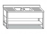 Lavello su 4 gambe con ripiano, realizzato in acciaio inox AISI 441 con top lavatoio in acciaio inox AISI 304 mod. LRG.20 di misure L200xP70xH85 cm, con alzatina a muro, e 2 vasche da 40x50xH25 cm e con 2 gocciolatoi. Dotato di tappo troppo pieno. Non è compreso nel prezzo il sifone e il miscelatore.
