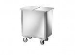 Tramoggia mod. AV4666 su ruote costruita interamente in acciaio inox satinato con coperchio estraibile, lt 115, misure L61xP40xH73 cm.