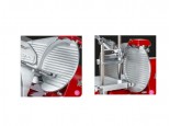 Affettatrice a verticale mod. 300 R red line CE professionale, Costruzione secondo gli standard 89/336 CE e 89/109 CE con lama di acciaio Rispondente alle più rigorose esigenze igieniche.