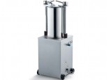 Insaccatrice elettrica verticale Royal Mod. IS V 15 IDRA Semplici e funzionali, le nuove insaccatrici idrauliche verticali IDR contano su di un potente impianto idraulico che lavora a 120 Bar di pressione. Costruite interamente in acciaio inox, totalmente smontabili per la pulizia senza l’uso di attrezzi, vantano caratteristiche proprie di modelli di classe superiore: - coperchio e tampone totalmente in acciaio inox; - guarnizioni al silicone che agiscono all’interno del cilindro per una maggiore tenuta e durata della guarnizione stessa; - protezione ermetica cilindro oleodinamico; - stelo pistone in acciaio inox; - cilindro in acciaio inox, lucidato e ribordato,senza verso obbligato; - potente e silenzioso motore ventilato a 2.800 giri ad azione immediata; - ritorno pistone automatico con spegnimento motore; - comandi 24 V; - regolatore flusso olio di alta precisione; - ruote gommate opzionali per la IS 15 IDR, di serie per IS 25 - 35 - 50 IDR; - serbatoio olio con indicatore di livello.