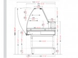 Vetrina mix pane neutra vetro curvo mod. VAC . Struttura portante inferiore in tubulare d'acciaio verniciato con polveri epossidiche a forno a 180° C con elementi di irrigidimento e piedini regolabili.