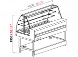 Piano espositivo in acciaio inox AISI 304 finitura Scotch-Brite. Piano lavoro lato operatore, profondo 193mm, in acciaio inox finitura Scotch-Brite. Parete posteriore lato operatore e fianchi laterali della vsca acciaio inox AISI 304 finitura Scotch-Brite.