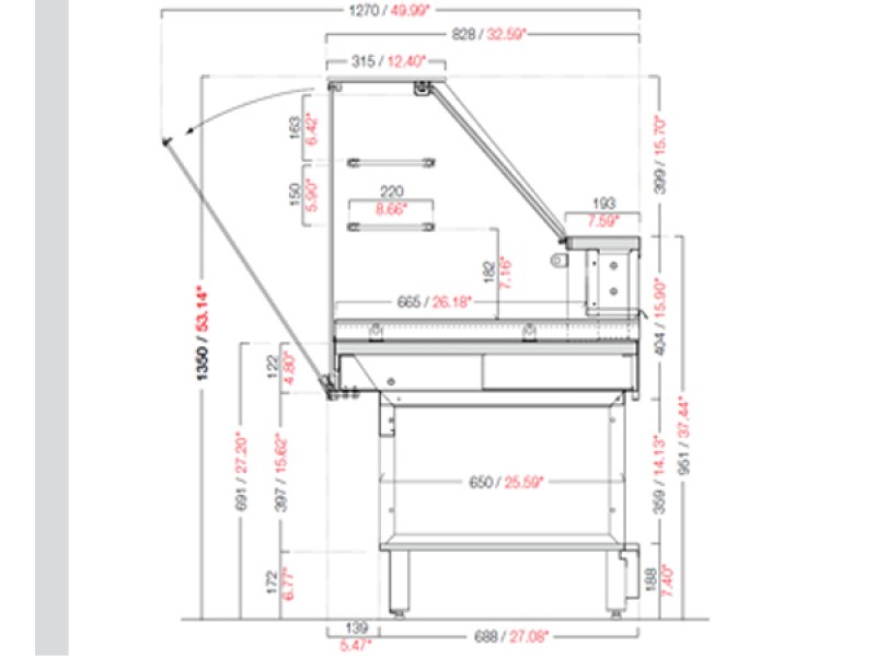 Lo speciale tubolare passacavi in alluminio posizionato a sinistra (lato operatore) della vetrina è unico per i cavi dell'eventuale mensola calda e per la plafoneria. MIX, sono disponibili con plafoneria di illuminazione a LED.