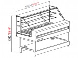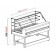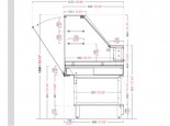 Piano espositivo in acciaio inox AISI 304 finitura Scotch-Brite. Piano lavoro lato operatore, profondo 193mm, in acciaio inox finitura Scotch-Brite. Parete posteriore lato operatore e fianchi laterali della vsca acciaio inox AISI 304 finitura Scotch-Brite.