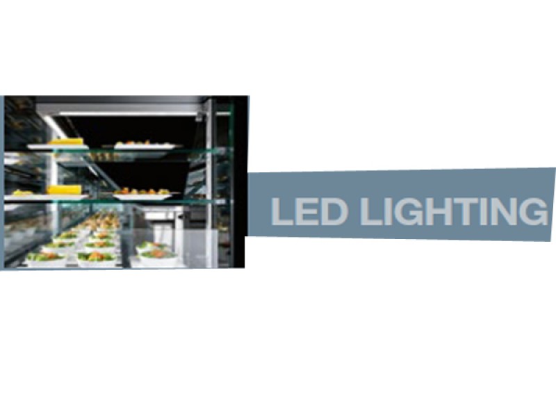 Lo speciale tubolare passacavi in alluminio posizionato a sinistra della vetrina è unico per i cavi dell'eventuale mensola calda e per la plafoniera. MIX è disponibile con plafoniera di illuminazione a LED.