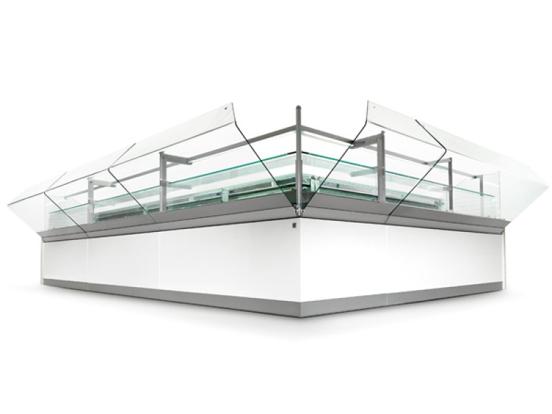 I fianchi laterali a filo della struttura sono di serie in vetro trasparente; disponibili, come optional, fianchi in vetro specchiati e fianchi in vetro riscaldati per mezzo di resistenze serigrafate, consigliati nel caso in cui le vetrine vengano installate in zone particolarmante umide (72,00€ + iva).