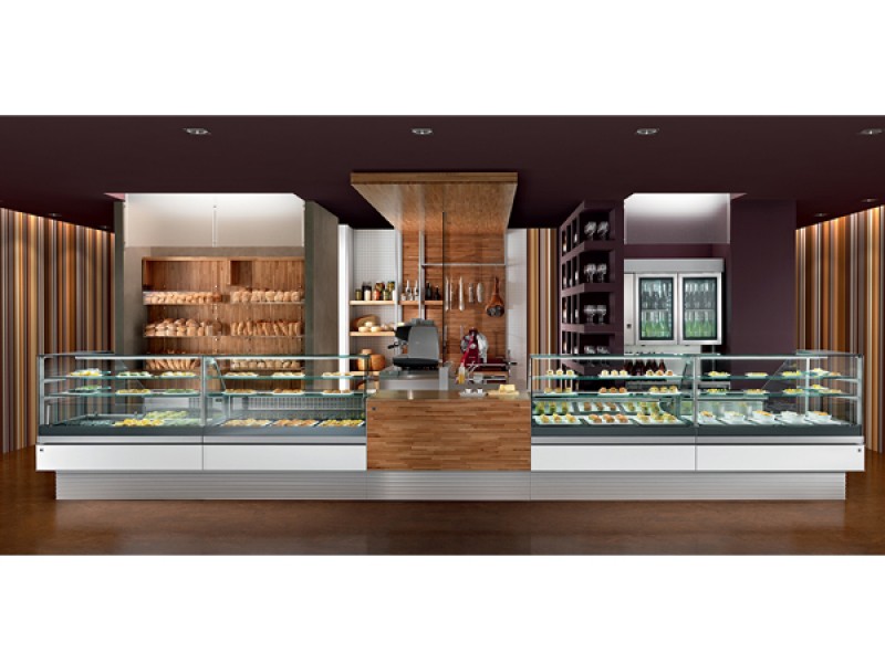 Freddo statico e freddo ventilato possono essere accostate tra loro e con tutti gli altri servizi della gamma MIX attraverso il kit di accostamento con fianchi in vetro specchiati; oppure possono essere canalizzate attraverso il kit di canalizzazione con o senza vetro camera divisorio trasparente, per lasciare la piena visibilità tra una vetrina e l' altra.
