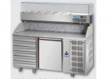 Banco pizza refrigerato 60X40 mod. PZ02MIDC6 (motore a DX) con 1 sportello + cassettiera non refrigerata a 6 cassetti 60x40 cm con vetrina refrigerata (bacinelle e coperchi non inclusi)