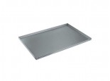 Teglia rettangolare in alluminio Mod. TREPAN. Spessore 12/10. Dotata di 4 bordi con spigoli saldati e bordo con risvoltino antitaglio. Consigliabile per pasticceria.