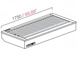 Drop in da incasso senza vetri, freddo ventilato/ caldo secco modello L1750 senza pannellatura, struttura portante inferiore in tubolare d'acciaio verniciata con polveri epossidiche a forno 180°C con elementi di irrigidimento, piedini regolabili. Scocca monoblocco schiumata con poliuretano a bassa densità con spessore minimo di 50 mm. Parti a vista in acciaio inox AISI 304 finitura Scotch Brite. Sistema anti condensa con cavo caldo inserito all'interno di un tubo in rame posto a contatto della cornice perimetrale della vasca. Il piano espositivo dei banchi DROP-IN DELICE con servizio freddo/caldo è costituito da un unico piano in vetro bianco temperato con serigrafia resistiva incassato di 30mm rispetto al bordo perimetrale e ulteriormente ribassabili di altre 2 postazioni di 20 mm ciascuna, per consentire di esporre e conservare adeguatamente merce di altezza diversa. La regolazione del piano espositivo in vetro è facilitato dalle maniglie laterali.