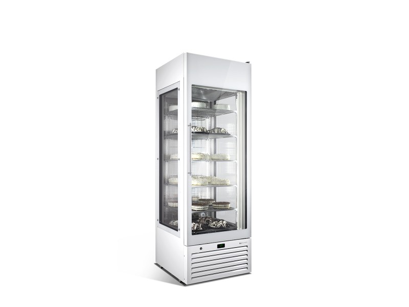 Ideale per ogni tipo di prodotto da pasticceria e gelateria, con 3 ampi lati vetrati per una massima visibilità.