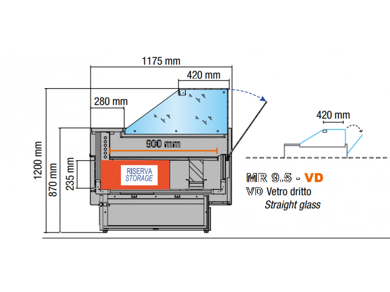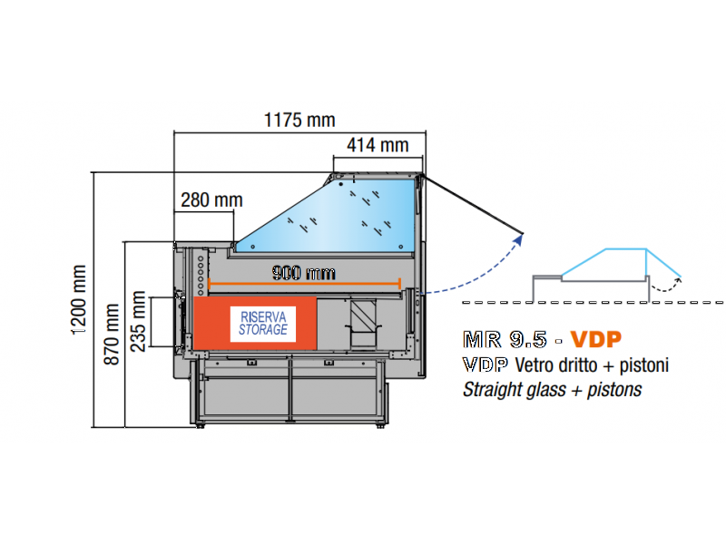 - Spalle termoformate e coibentate (spessore 40 mm);- Fianchi laterali in vetro temperato predisposti per mensola intermedia;- Pannello comandi elettronico; - Riserva refrigerata a sportelli;- Plafoniera con illuminazione led;- Piano di lavoro in acciaio inox; - Piano espositivo in acciaio inox;- Vaschetta evapora-condensa automatica con galleggiante (CG);- Sbrinamento a fermata; - Vetro deflettore (solo per versione refrigerata)