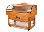 Espositore mod. BUFFET refrigerazione statica, realizzata in vero legno massello, con vetro ad apertura e chiusura manuale, parte superiore in legno per appoggiare posate e altro, temperatura di utilizzo +3+10°C. Munita di 1 mensole esterna.