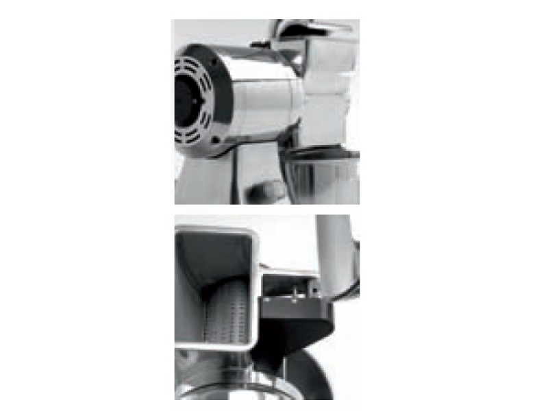 Grattugia trifase mod. GS trifase per uso professionale in grado di lavorare grandi quantità di prodotto, struttura in alluminio pressofuso lucidato.