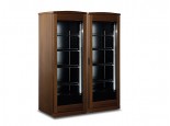 Frigorifero mod. CW 800 L ventilato con porta a vetro, in lamiera d'acciao preverniciata nera con rivestimento in legno, vasca in lamiera d'acciaio nera, con isolamento di 40 mm in poliuretano iniettato SENZA HCFC/CFC e sistema condensante a tubi con motoventilatore.
